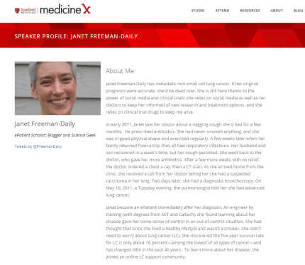 @JFreemanDaily (Janet Freeman-Daily) , cofounder and comoderator for Lung Cancer Social Media #LCSM Chat on Twitter.