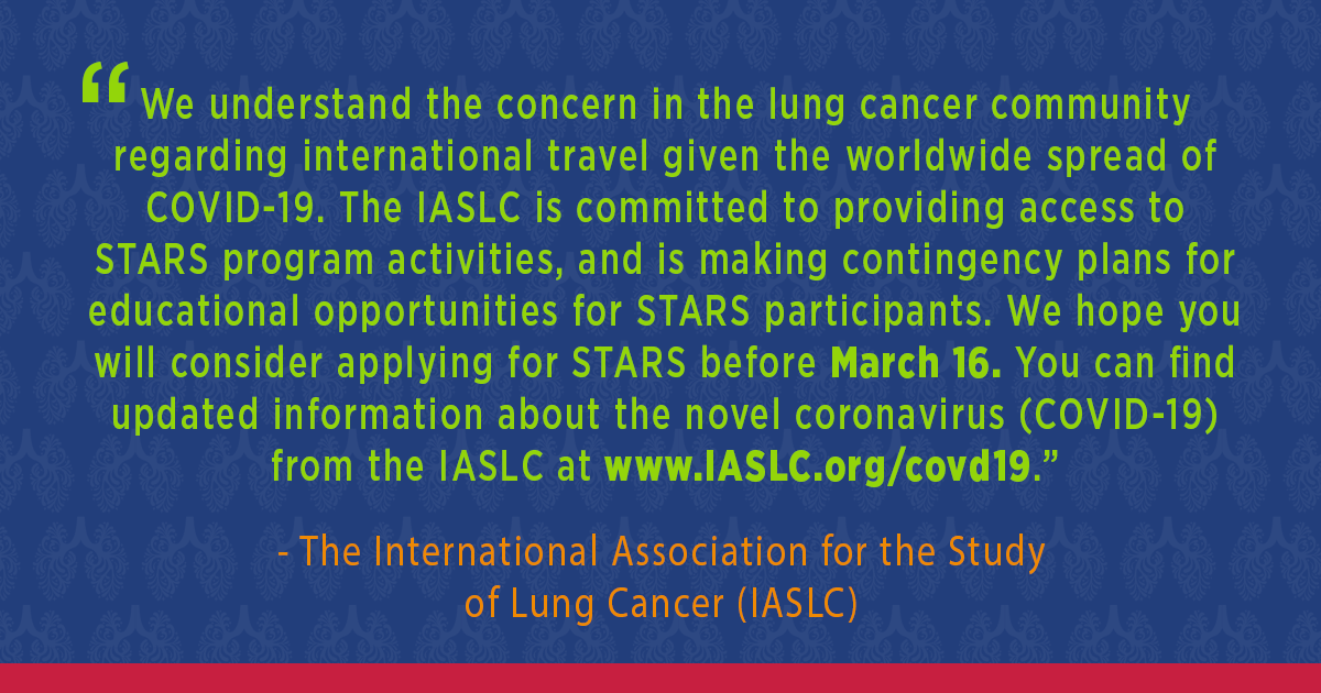 As advocacy organizations dedicated to serving the needs of lung cancer patients, all of us are closely monitoring the latest developments related to the outbreak caused by the novel coronavirus, SARS-CoV-2, and the resulting disease, COVID-19.