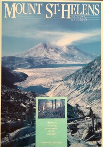 That was my first major disaster. It taught me that life goes on, nature finds a way, and silver linings can be found. I have some beautiful pieces of art created from Mt St Helens ash–they are unique reminders that the world does not end because major change occurs. The poster above hangs on my wall to commemorate.