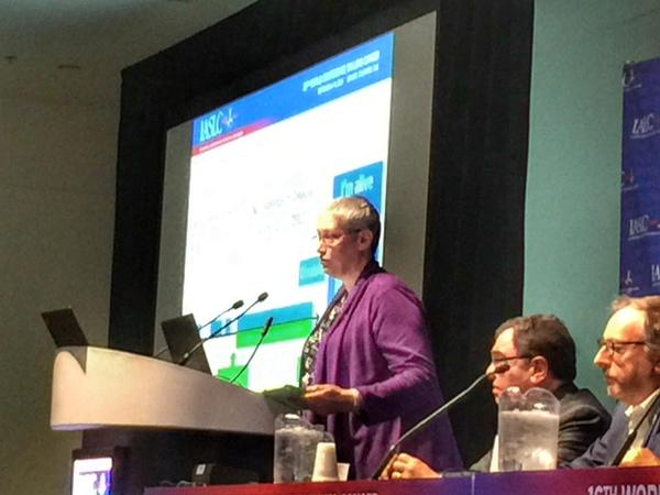 I appreciate IASLC including me in this press conference. They’ve been responsive to lung cancer patients and advocates, and have included the patient voice in several conferences. Patients and advocates participated in the planning process for this World Conference on Lung Cancer, as demonstrated by the number of patient and advocate presentation on the program. This is a first among major oncology conferences, and a step forward for engaged patients.