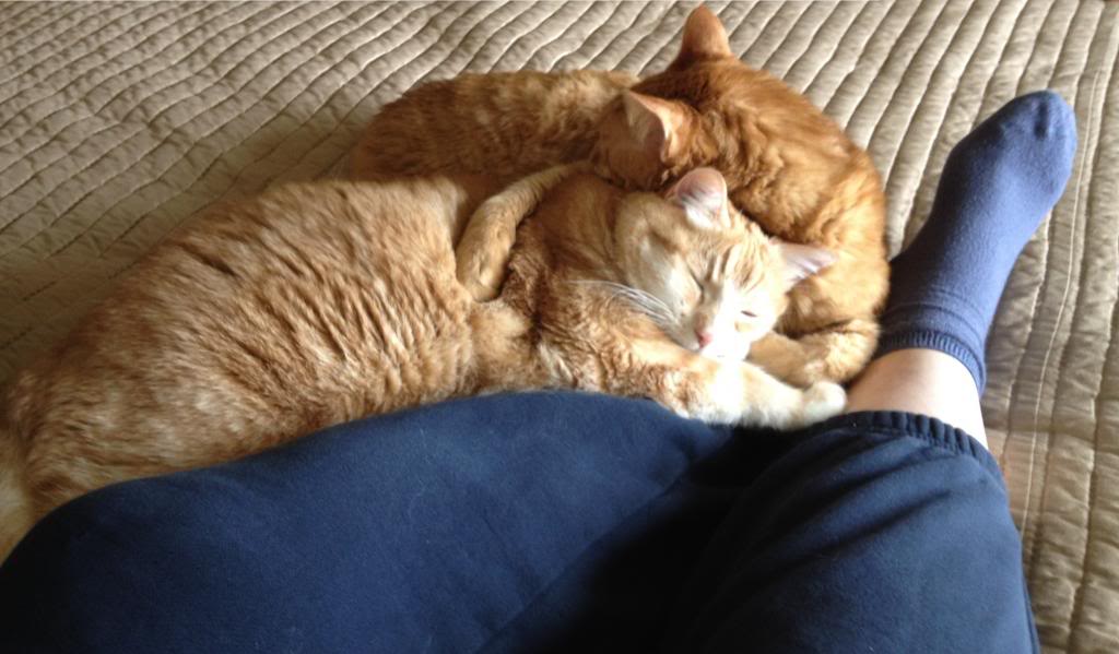 Feline overlords Admiral and General are doing their part by keeping my feet warm. Well, at least one foot.